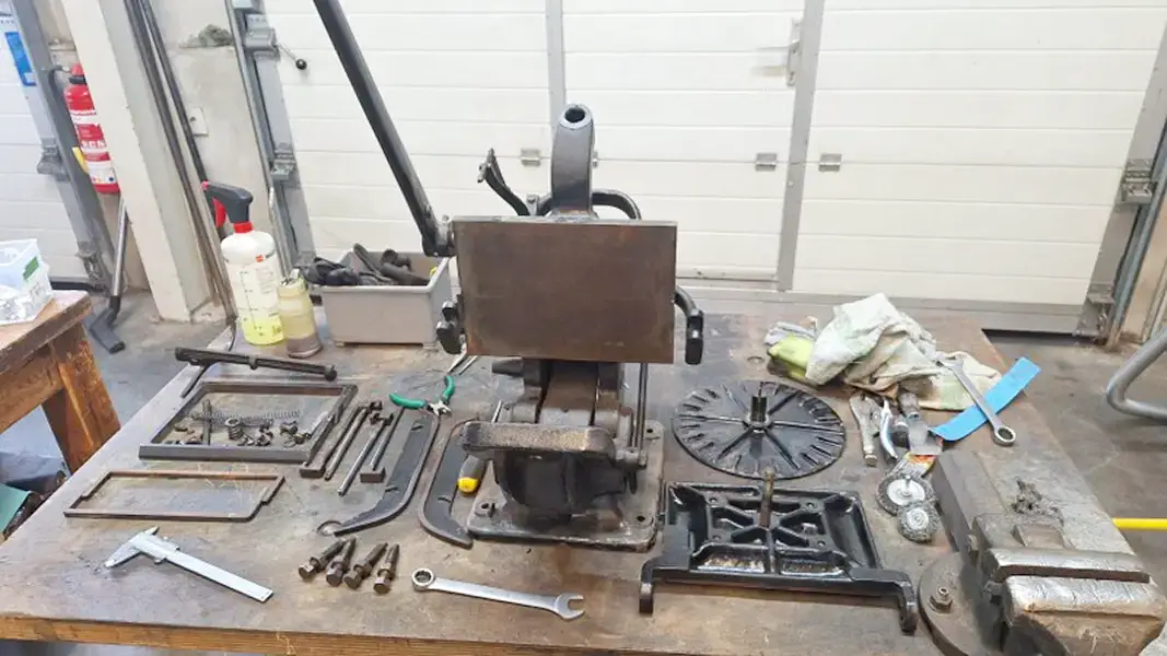 In unserer Werkstatt steht ein Boston Tiegel “BuS”, der gerade sorgfältig überholt wird.