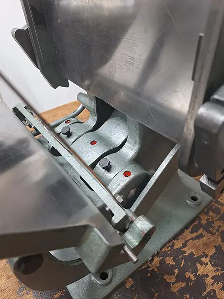 In short : This Hohner Boston Platen Press HOBO 1 is being lovingly cleaned and thoroughly tested in our workshop.