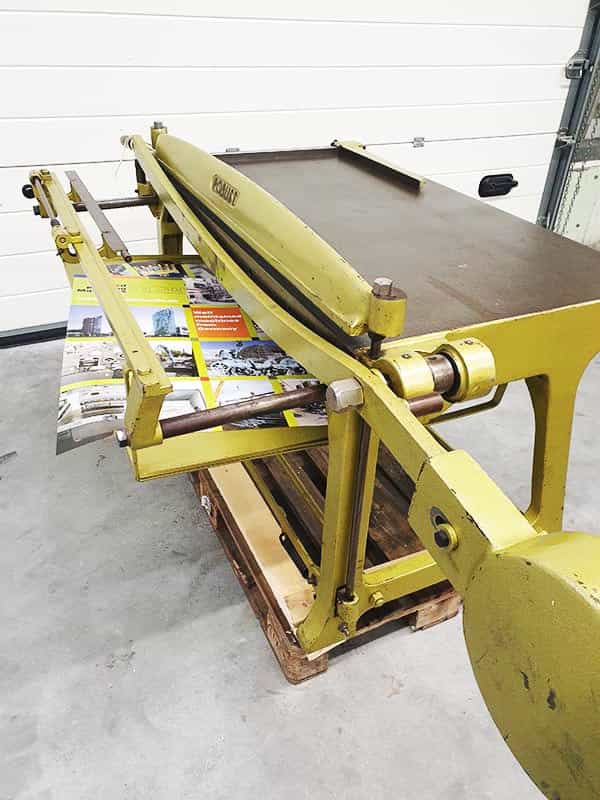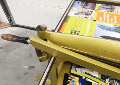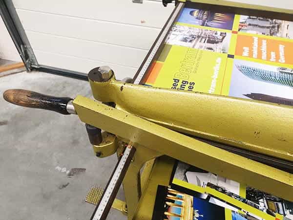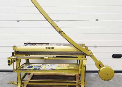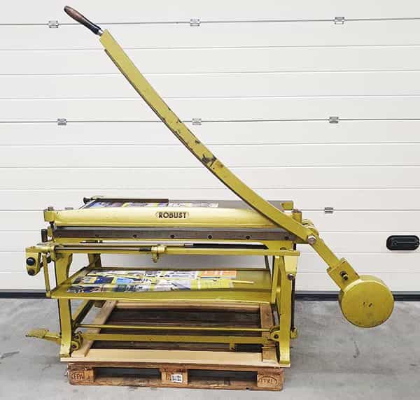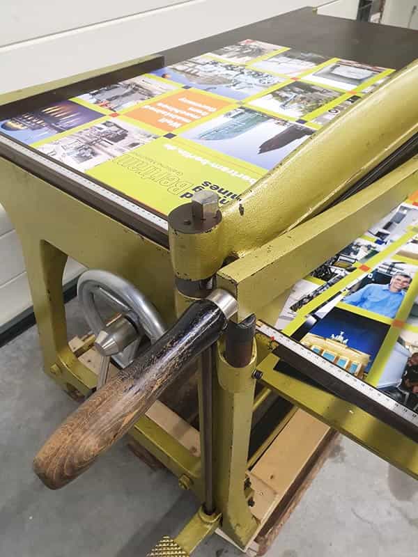 Die Robust Schlagschere hat ein ordentliches Gewicht von 350 kg. Und man kann fast alles damit schnei­den – zumin­d­est alles aus Papier und Pappe. Die Schlagschere hat eine fantastis­che Schnit­tlänge von 120 cm, der Tisch ist 72 cm tief. Damit lässt sich doch schon mal was anfan­gen.