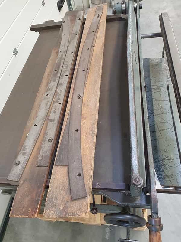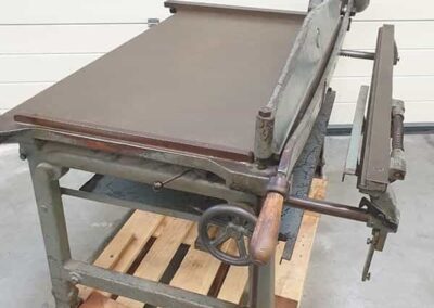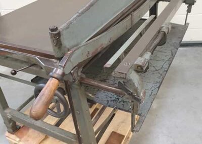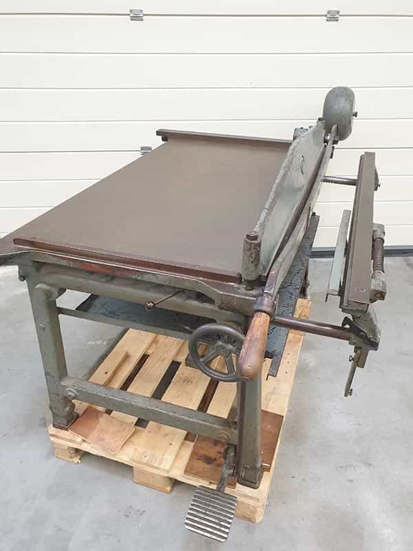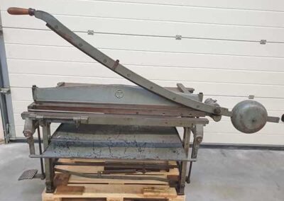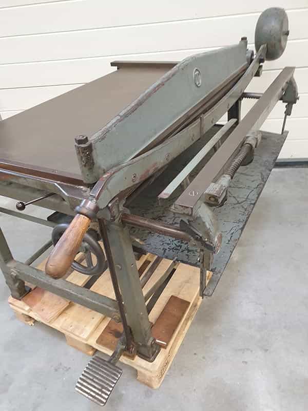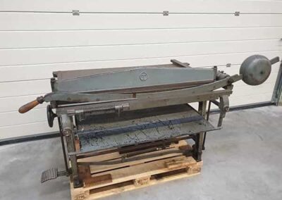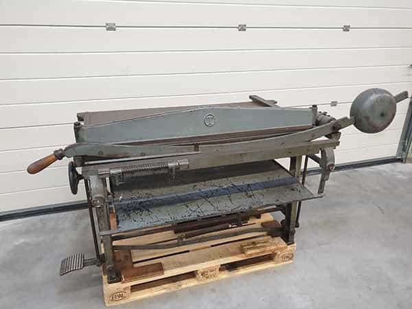 Ein unverzichtbares Stück in einer Buchdruckerei. Hiermit kann Papier und Pappe perfekt auf das gewünschte Maß geschnitten werden. Diese Schlagschere enthält 2 Messersätze (Ober- und Untermesser) im Lieferumfang und schneidet bis zu 120 cm große Bogen.